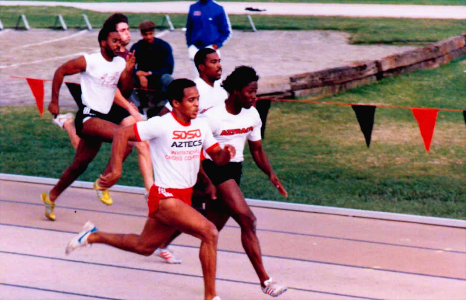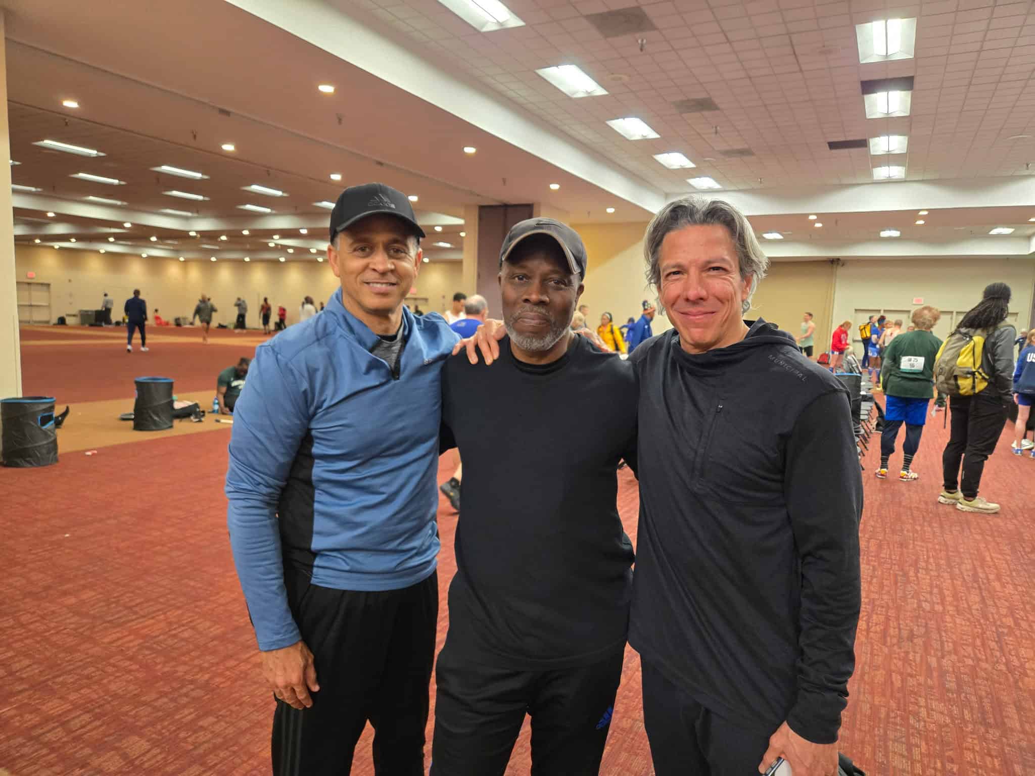 So this is a little different, let me tell you about my plus ones or more accurately plus two. What I mean by that is I got a couple of buddies and friends that are traveling to compete as well. The first is my long time college buddy, roommate and best friend Andre F. I was able to talk Andre into competing at last year’s us Nationals in the 60 meters and he did well. This year he’s back and two adages come to mind; “be careful what you wish for” and “why bring sand to the beach?” Why? because this guy is going to be competitive. All throughout college (San Diego State) we ran neck and neck in our sprint races. Why in my right mind would I want to relive that now? Well, because I love this guy and I love competition and I wouldn’t have it any other way. Now my second plus one I think is a great story he’s actually a client of mine Tony J. I train his two kids. We somehow got on the topic of Master’s track and he had an interest. He started training under my tutlelidge and now he’s here. He’s not only here as a newbie, in my opinion he’s here as a contender, luckily for me he’s in an age group 10 years younger than me so I didn’t shoot my myself in the foot in that instance.